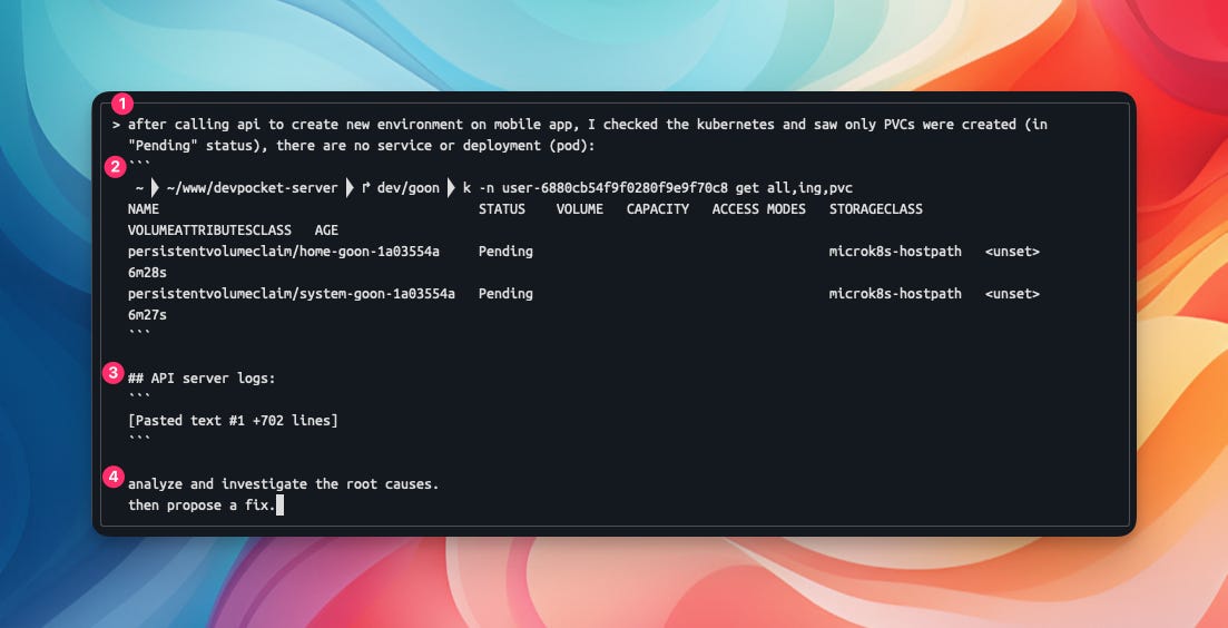 An agent’s task processing time is often quite long, for example, bootstrapping a new project can take 1-2 hours, fixing bugs 10-15 minutes, refactoring 30-60 minutes,... so writing prompts carefully saves a lot of wasted time.